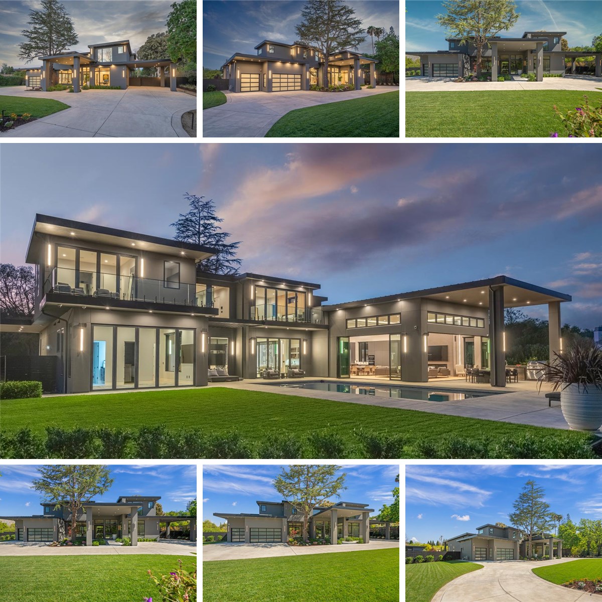 Nestled on over one pristine flat acre within an exclusive gated enclave in Saratoga bordering Los Gatos and framed by the serene Los Gatos and Saratoga Mountains, this extraordinary modern estate offers unparalleled luxury in the heart of Silicon Valley. Masterfully completed in 2023, the bespoke 6,824-square-foot residence unfolds across two elegant levels, gracefully linked by a grand staircase. It features eight magnificent bedroom suites, eight designer bathrooms, and one refined powder room, all set amid lush new landscaping and majestic vintage oak trees. The architectural masterpiece boasts soaring 25-foot ceilings in the grand great room, where an exquisite living room and formal dining area flow seamlessly into a state-of-the-art, open-concept kitchen. An indulgent 800 SQFT detached guest house, with its own living room and kitchen, & the 2 bedroom/2 bathroom suites overlooks the resort-style pool, spa, and meticulously curated gardens. Refinements include a cutting-edge home theater, sophisticated bar, adaptable spaces for a home gym or formal library/office, an outdoor chef’s kitchen with BBQ, covered lounging areas, a welcoming fire pit, and multiple balconies with captivating vistas. Every detail from premium materials to flawless finishes reflects uncompromising quality and masterful craftsmanship, creating a serene, one-of-a-kind sanctuary of sophisticated modern elegance in one of Saratoga’s most prestigious neighborhoods.